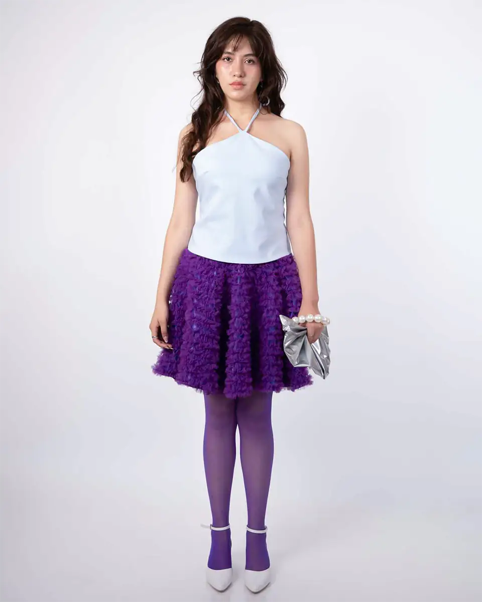 Envíos a todo el PerúFalda en Corte Mundo, confeccionada en tela Versace y fruncida en tul mesh con cierre invisible lateral, fruncido manualmente.