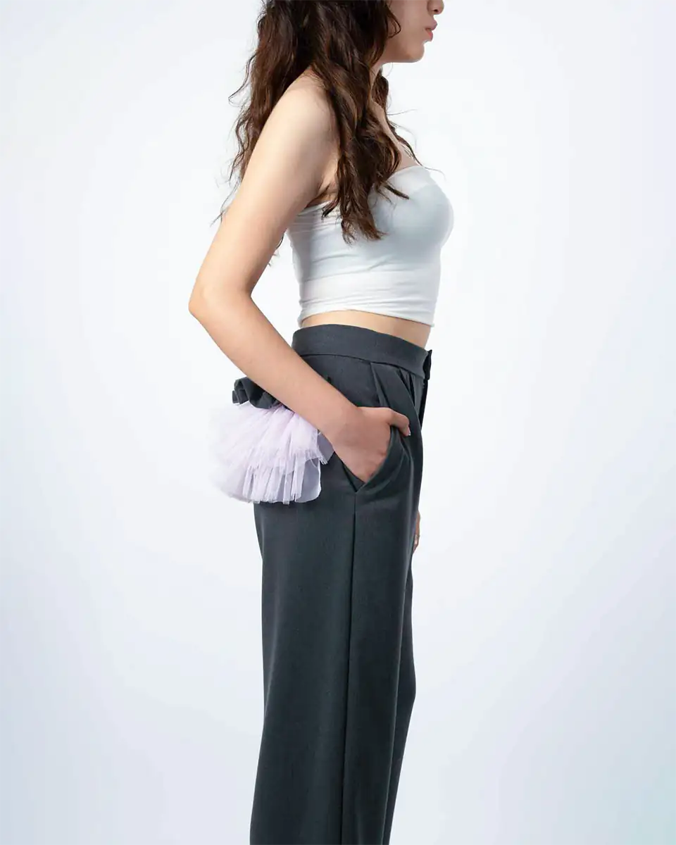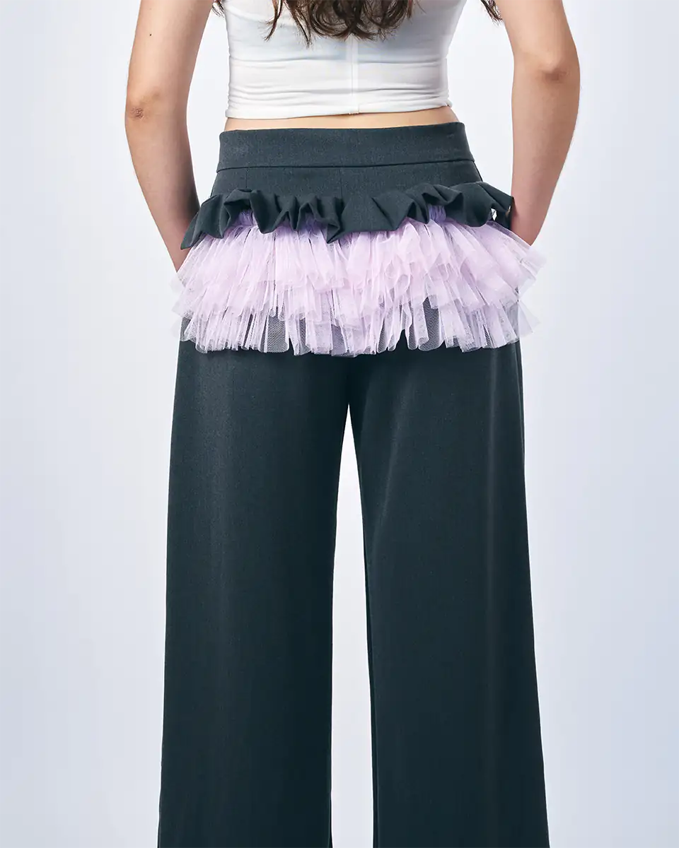 Envíos a todo el PerúConfeccionado en Tela Sastre con corte Recto y pinzas delanteras, media Luna en tul fruncido y basta con Pespunte.